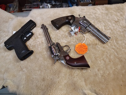 H&K Compact 40cal $900 Ruger Single Six .22 & & 22 mag $599 Colt Python 357cal $1479